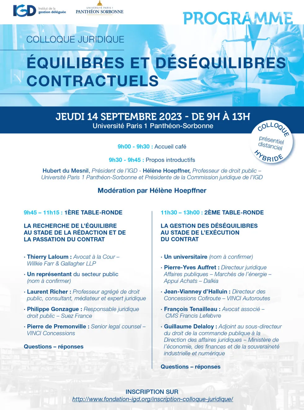 L’IGD est heureux de vous inviter à participer à ce colloque « Équilibres et déséquilibres contractuels » organisé en partenariat avec l’Université Paris 1 Panthéon-Sorbonne.